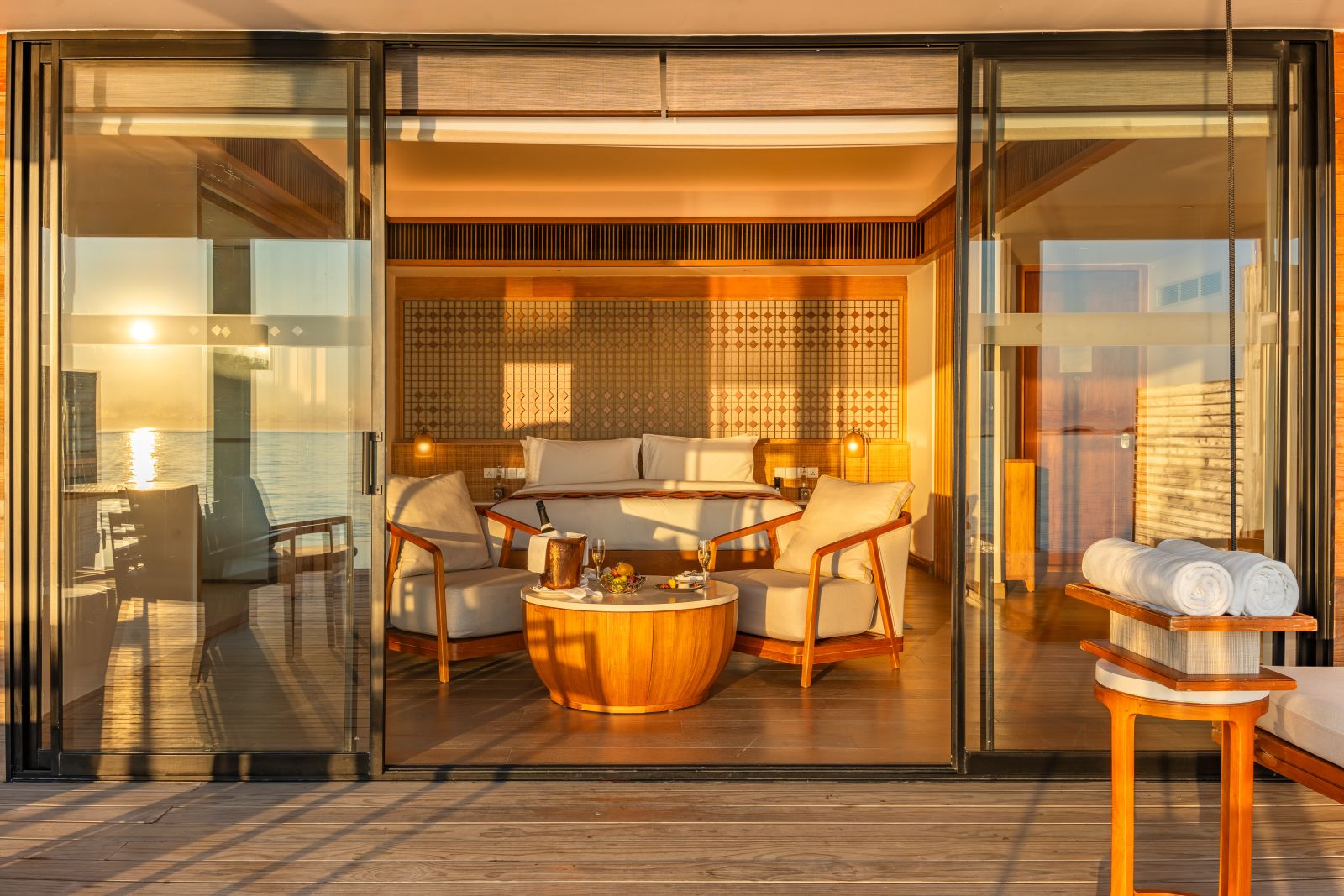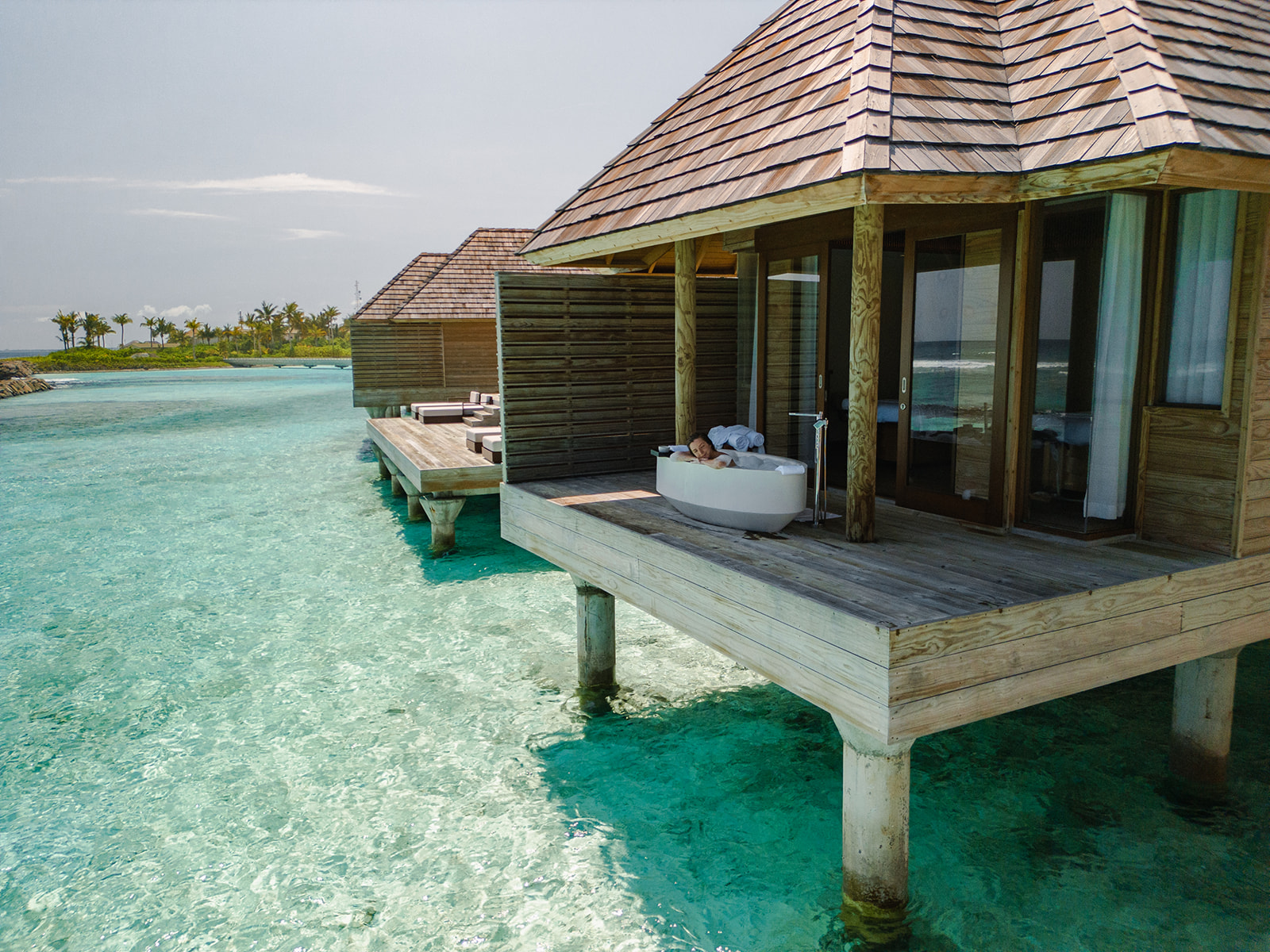 Die Umgebung des Resorts trägt entscheidend zum Wohlbefinden bei: Acht Überwasser-Villen auf einer eigenen Insel, nur einen kurzen Spaziergang oder eine Fahrradtour über den Holzsteg entfernt, laden zu ungestörtem Rückzug ein. Von den Behandlungsräumen aus schweift der Blick über das weite Ozeanpanorama – während die Surfer am bekannten Chickens Break, einer der längsten linksbrechenden Wellen der Malediven, ihre Runden drehen, entspannt allein schon das Zuschauen.