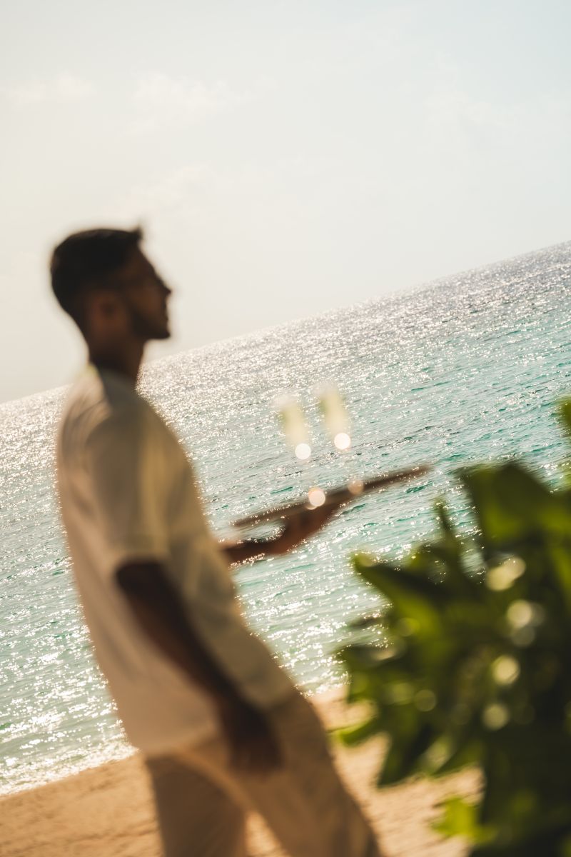 Mit Blick auf die türkisfarbene Lagune verschmelzen klare Linien mit warmen Materialien. Offene Holzregale präsentieren erlesene Spirituosen und seltene Jahrgänge, während sich die Geschichten dahinter sanft entfalten. Botanische Noten greifen Bells Naturbeobachtungen auf, feine salzige Nuancen spiegeln maritime Studien wider, und ausgewählte Spirituosen folgen den Spuren seiner Reisen. So entsteht ein Erlebnis, das Vergangenheit und Gegenwart elegant miteinander verbindet – im Glas und darüber hinaus.